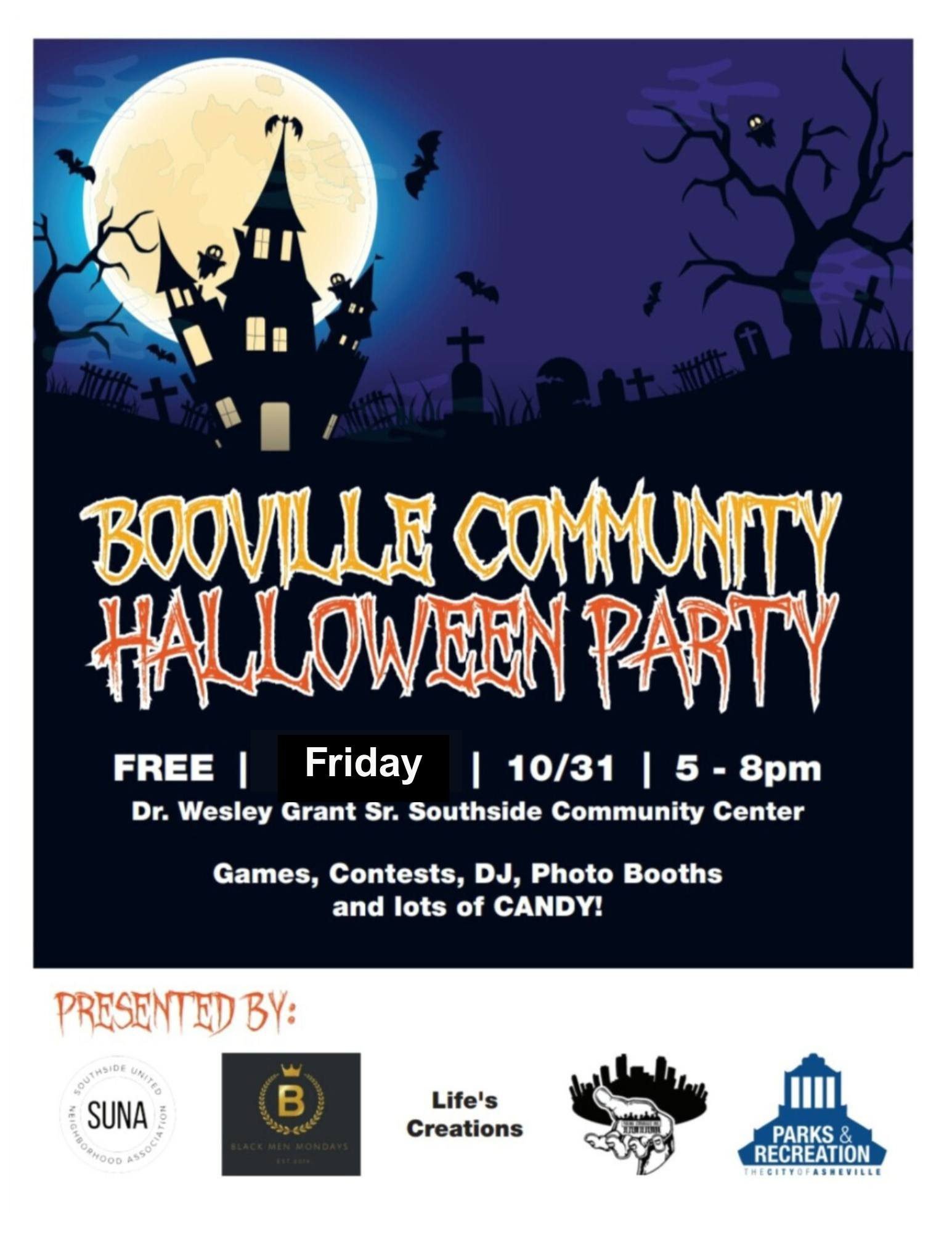 Southside United Neighborhood Association (SUNA), Black Me Monday, Life's Creations, and Parks & Recreation The City of Clarksville (Clarksville, TN has a Parks & Recreation department with similar events, but the venue confirms Asheville, NC).